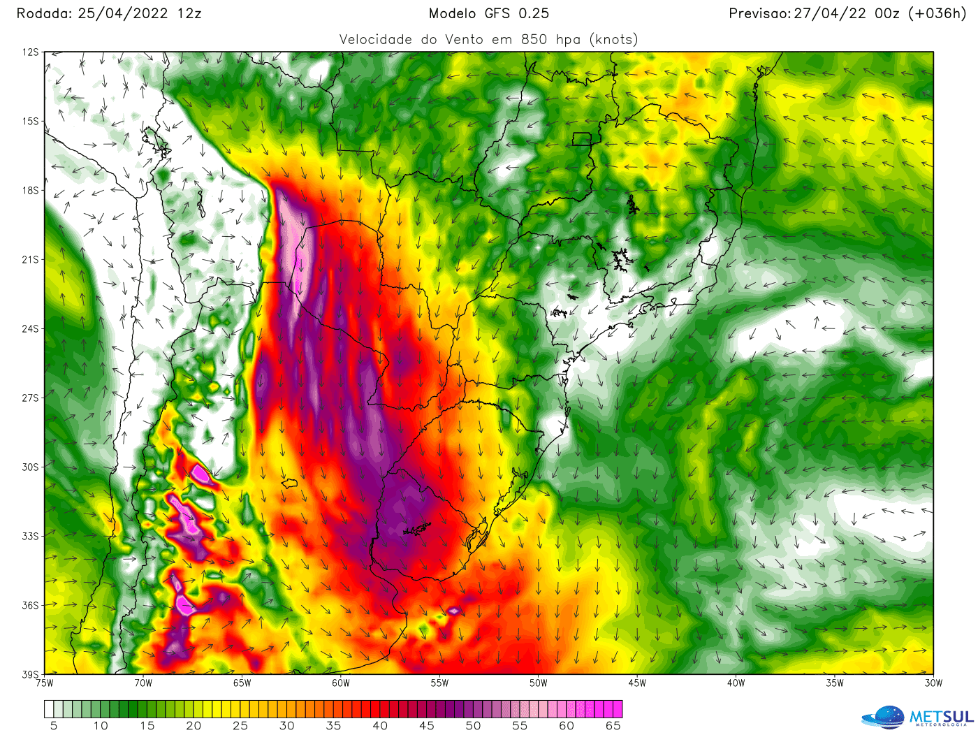 Second, a low-level jet stream (JBN or LLJ) will transport extremely hot air to the area where the storms will form. The plane will be very intense, with winds ranging from 1,000 to 2,000 meters of altitude, from 100 km/h to 150 km/h. As the cold front progresses, the divergent wind pattern (shear) will be huge and favorable conditions for hurricanes will be created.