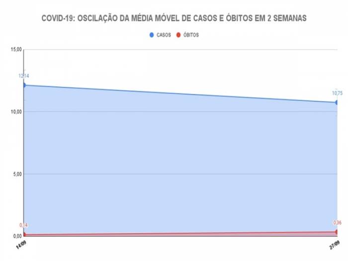 Already the moving average, which takes into account the numbers of the past two weeks only, is 10.75 daily cases. The figure is 11.5% lower than it was 14 days ago, which means that the scenario was swinging lower – but still within the level that indicates stability (which is up to 15%).