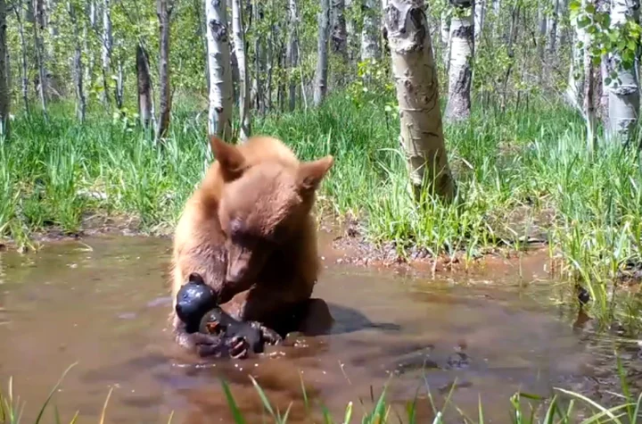 Last year, Tamarack was rescued from a wildfire area in Northern California, United States. The paws of an orphaned bear...