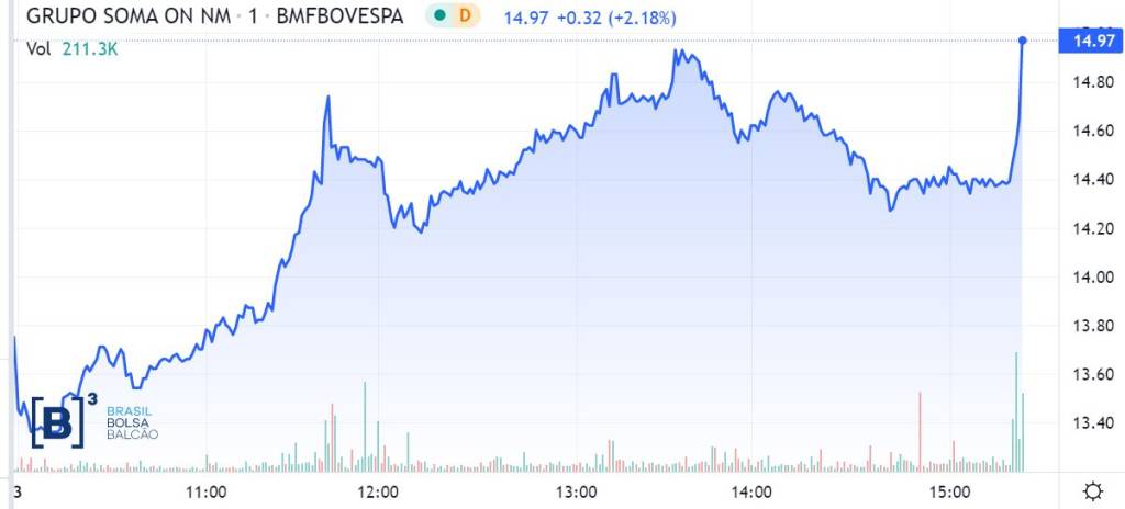São Paulo – the work of Grupo Soma (SOMA3(came to shoot 12.66% and arezo)ARZZ3) gained up to 7.53% with news of potential progress in business consolidation. SOMA3 shares declined, but closed 8.90% higher at R$14.80, while ARZZ3 assets rose 5.33% to R$80.06.