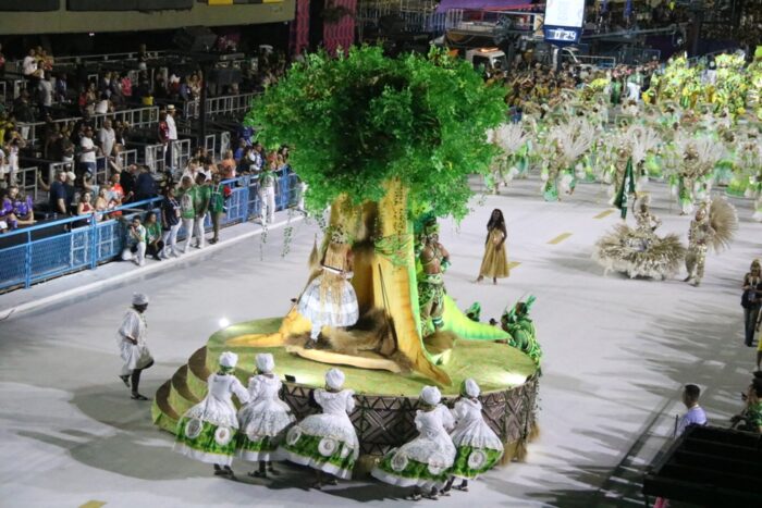 Entering the Acadêmicos do Cubango Avenue with the theme “O Amor Preto Cura: Chica Xavier – Bahia’s Mother of Brazil” paid tribute to actress Chica Xavier. The school made a beautiful array of costumes, but missed allegories, with street lighting problems, as well as flaws at the end. However, the carnival’s director, Alan Jones, highlighted the school’s strength.